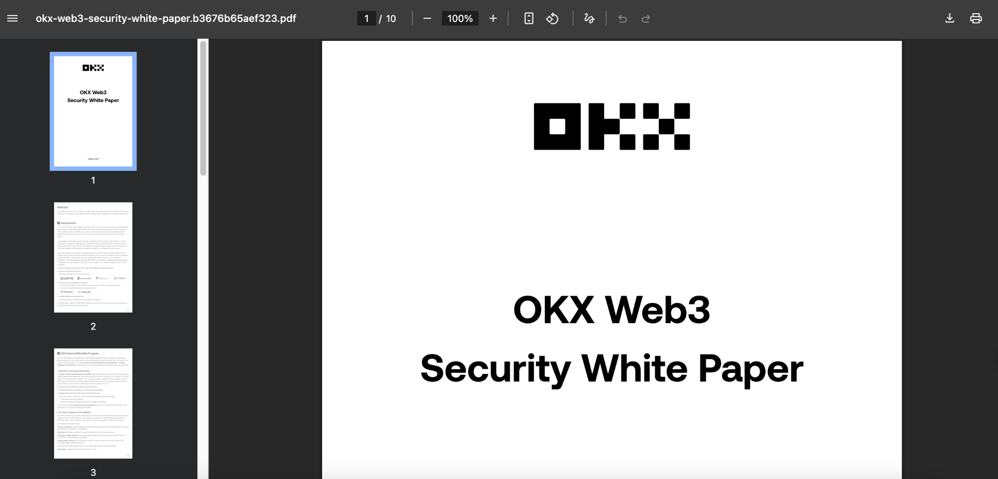 在扒这些报告的过程中,我顺藤摸瓜看完了那份长达数十页的《OKX Web3 Security White Paper》(安全白皮书)。
